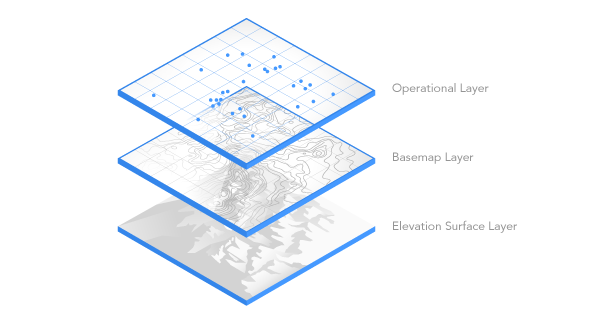 Um Ihre Grundkarten und Themen samt Höhen und Tiefen auf dem Gelände im 3D-Modus darstellen zu können, muss eine entsprechende Höhenoberfläche in ArcGIS Enterprise oder ArcGIS Online bereitgestellt werden.